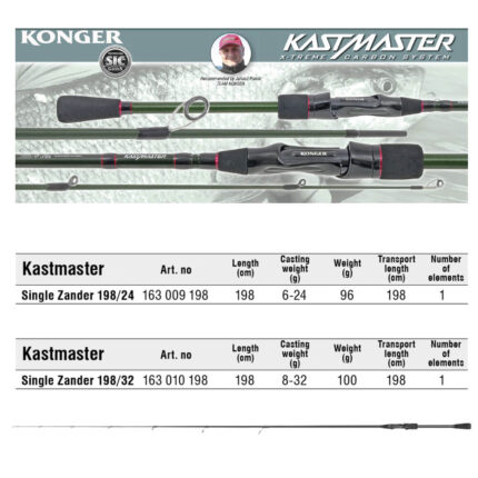 Konger Kastmaster Jig Zander Pro este o lanseta recomandata in pescuitul salaului cu naluci soft. Varful lansetei (de tip blector - solid tip) va permite sa observati fiecare muscatura fina, in timp de blankul puternic va va permite sa intepati foarte rapid. Poate fi folosita atat din barca cat si de pe mal.