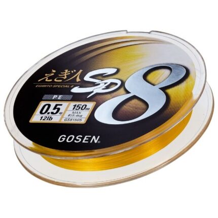 Firul textil GOSEN SP 8 EGIBITO Special este realizat din 8 fire de inalta densitate si se caracterizeaza printr-o rezistenta si fiabilitate exceptionale. Acest model a fost creat pentru piata japoneza in special pentru capturarea bibanului de mare, dar calitatile sale il fac o alegere de incredere pentru diferite situatii si regiuni. Densitatea mare a impletiturii, suprafata nedeta, sectiunea perfect rotunda, lansarile lungi si silentioase nu sunt o surpriza pentru producatorul japonez GOSEN. In plus, GOSEN SP 8 Egibito impresioneaza prin rezistenta ridicata si rezistent la abreziune, deci prin urmare, viata mai lunga. Firul este extrem de popular prin raportul pret-calitate atat in Japonia, cat si in multe alte tari, iar principalul "vinovat" pentru pozitia competitiva este tehnologia SG a brandului Gosen. Nu in ultimul rand, culoarea galben stralucitor a firului este o garantie ca te vei baza pe o vizibilitate excelenta in orice moment si situatie.