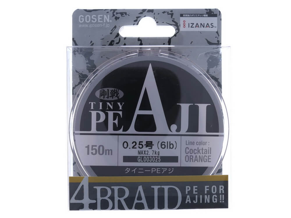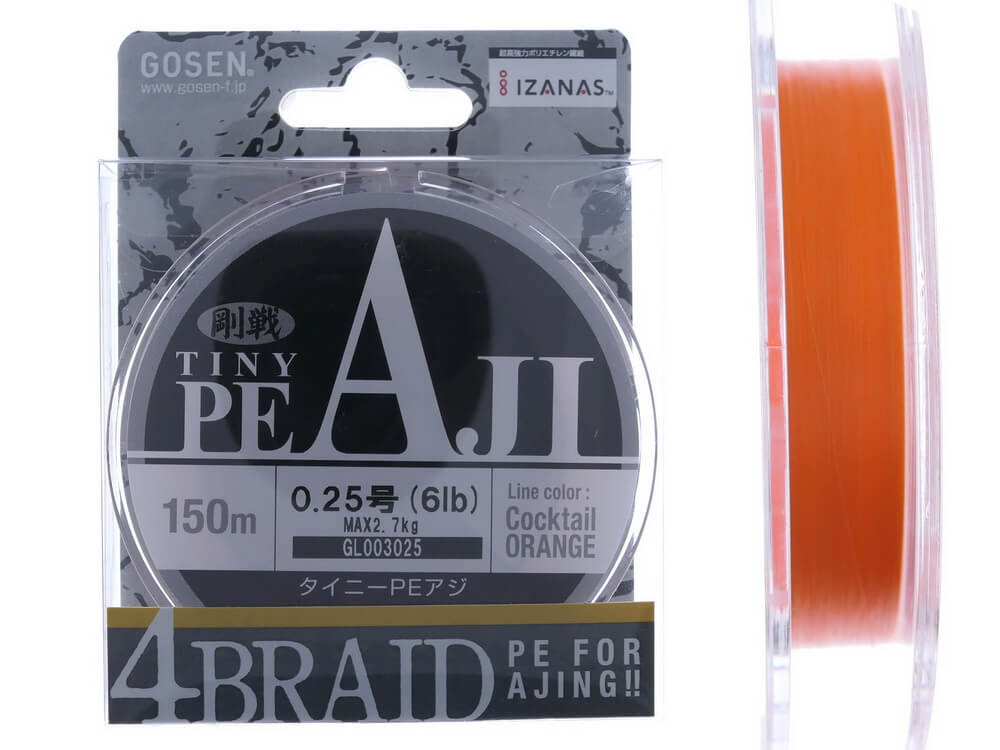 Gosen Tiny PE AJI este un fir textil impletit in 4 (X4), ideal pentru pescuitul XUL sau UL. Este realizat din 4 fibre de polietilena de inalta rezistenta, cu testatura extrem de densa si prin umare este un fir perfect neted si rotund, minimizand frecarea la trecerea prin inele, ceea ce asigura lansari mult mai lungi. Are o forma perfect rotunda si o suprafata matasoasa, care asigura lansari foarte lungi cu o viteza mare de imersare a nalucilor, in coloana de apa. A fost special coceput pentru a pescuitul LRF (light rock fishing) si HRF (hard rock fishing) cu naluci de tip micero minnow si jiguri usoare, fiind una dintre cele mai bune fire textile pentru aceste stiluri de pescuit. Procesul de fabricare SG inventat de firma Gosen ofera o elasticicate minima si sensibilitate foarte mare. Netezimea suprafetei si textura fibrei si in sine isi pastreaza proprietatile pe o perioada lunga de utilizare.