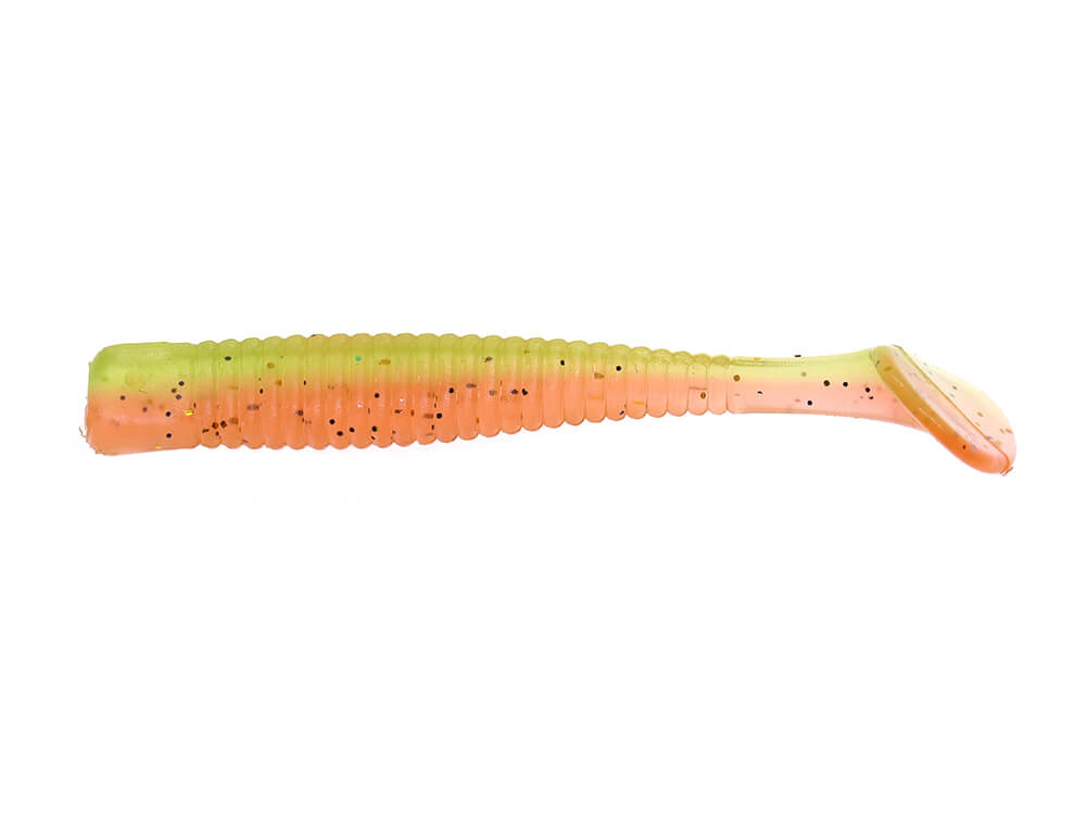 Modelul Skimpy se fabrica in doua marimi : 6.3CM (2.5”) si 8.9CM (3.5”). Aceasta naluca are un fel de corp flexibil si miscator si este ideala pentru capturarea bibanului. De asemenea, acest model se evidentiaza prin miscari active realistite datorita cozii mobile si suprafetei corpului plina de nervruri. Un atractant special cu un gust si miros natural, miscarile ractive si forma realista, consolideaza asemanarea cu un peste ratacit, usor de atacat. Gama larga de culori va va permite sa o alegeti pe cea potrivita : de la nunante de verde pana la culoare portocalie stralucitoare, care se va vedea bine in apa murdara.