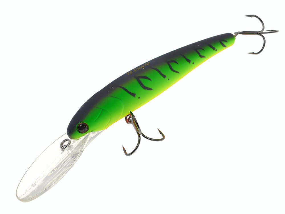 Hitfish TR Deep 115F este un vobler excelent pentru pescuitul la trena la adancime, special conceput pentru a atrage pestii pradatori mari, cum ar fi stiuca, salaul sau somnul. Aceasta masoara 11.5 cm si are forma de vobler minnow, cu o coada bine definita care imita miscarile naturale ale pestilor in apa. Adancimea maxima de scufundare poate atinge pana la 6.4 metri si chiar mai mult de atat, facandu-l ideal pentru zonele cu apa adanca (in special lacurile de munte foarte adanci cum ar fi: Lacul Izvorul Muntelui (Bicaz), Lacul Bezid, Lacul Colibita, Lacul Siriu, Lacul Firiza dar poate fi pescuit si pe rauri cu debit mai mare cu ar fi Dunarea, Olt, Mures, Siret sau Prut. Coada nalucii creeaza o vibratie puternica in apa, captand atentia pestilor aflati la distanta. Hitfish TR Deep este echipat cu ancore de calitate superioara (made in Japan), asigurand o prindere ferma si eficienta. Datorita designului sau robust si al actiunii realiste, acest model este alegerea perfecta pentru pescarii care doresc sa aiba succes in capturarea pradatorilor de dimensiuni mari.