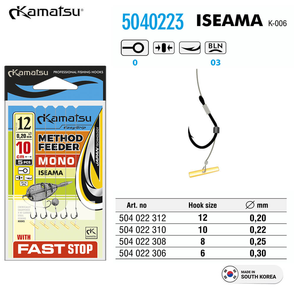 Kamatsu carlige Iseama legate cu fir monofilament 10cm pentru Method Feeder + Fast Stop, #10 (5buc/plic)